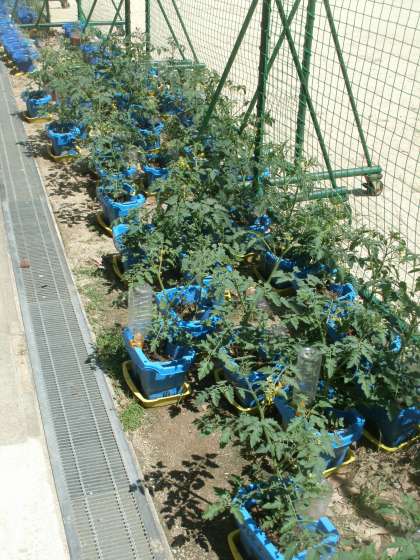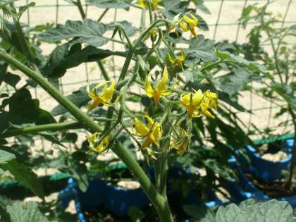 今回は、2年生の「ミニトマト」の紹介です。葉がよく茂っていて、花も咲いてきています。美味しい「ミニトマト」ができますように。