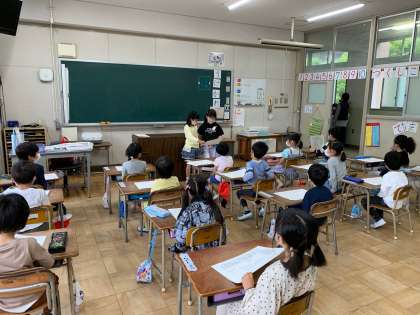 5月12日(木)学習のようす 1・2年学校たんけん1 公開日 2022/05/12 更新日 2022/05/12 お知らせ 2年生が1年生に学校を案内します。活動グループはわくわくグループの班です。ふだんは、高学年がリーダーとなっていますが、今日は2年生がリーダーになりました。 いいね(0)