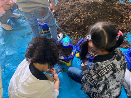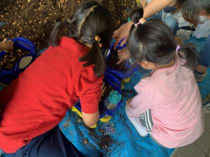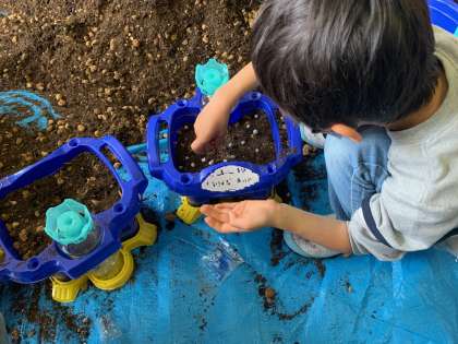 種をまく場所や、肥料のまき方を先生の指示通りできました。
