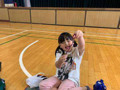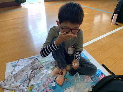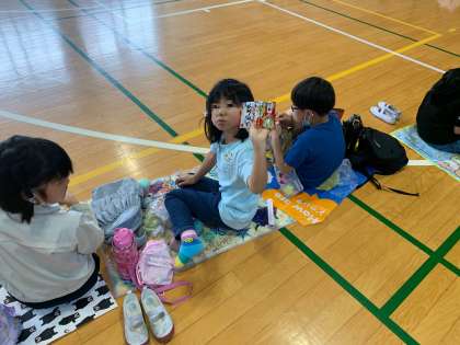 はじめての遠足が延期になったので、少しだけおやつのじかんをとりました。