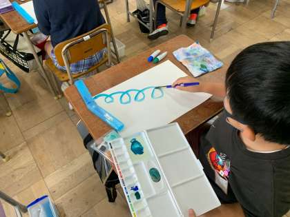 「点と線でかこう」 できあがりが楽しみです。