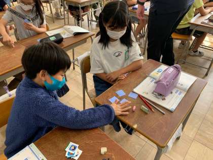 5月17日(火)学習のようす 5年英語1 公開日 2022/05/17 更新日 2022/05/17 お知らせ How do you spell your name? ペアでカーゲームをしながら楽しく学習できました。 いいね(0)