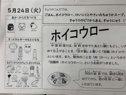今日の給食のホイコーローは、子どもたちに大人気でした。