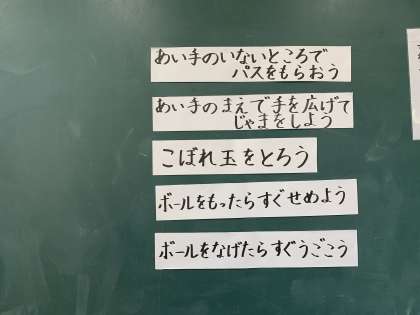 体育で取り組んでいるボールゲーム。チームで作戦会議です。