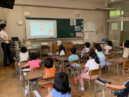 いろいろな色を英語で言ったり、アルファベットの歌を歌ったりしました。