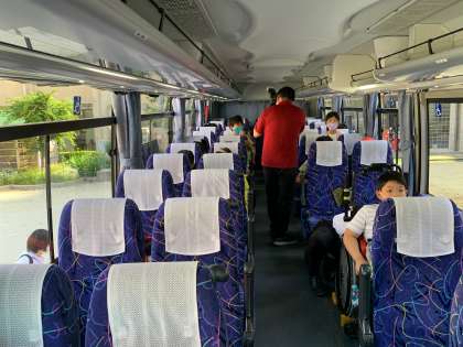 5年生がバスに乗り込みました。