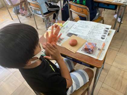 5年生がシーサー作りに挑戦です。