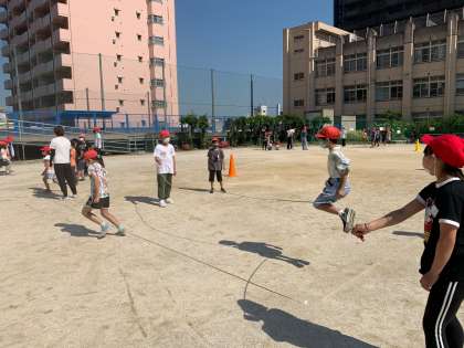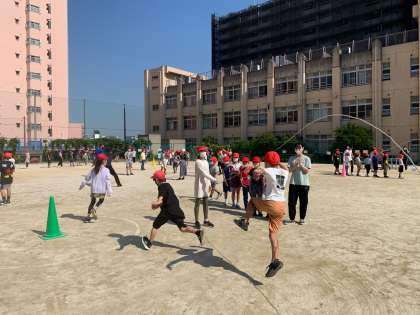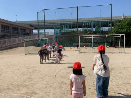 大なわ2 高学年が、みんながとびやすいように回しています。
