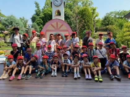 みんなで記念撮影。 上段 1年1組 下段 2年1組