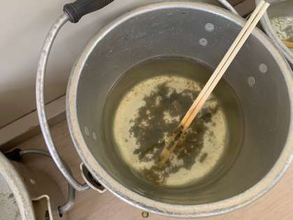 朝はわからなかったのですが、1年生が羽化しているヤゴを見つけました。