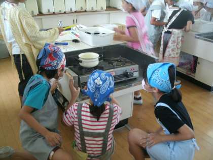沸騰までの時間を計測したり、火の大きさを調節したりしながら、役割分担にしたがってラーメンを作ります。ラーメンができあがれば、お楽しみの試食です。