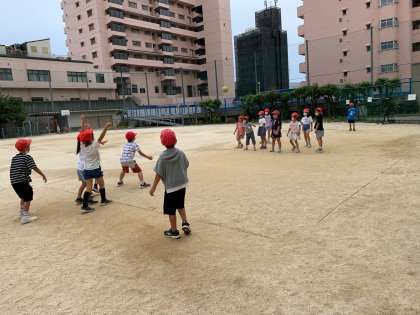 外遊びの様子です。 いつも以上に子どもたちが元気に遊んでいます。