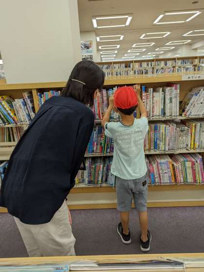 阿倍野図書館見学3 図書館の方にいろいろ教えていただいています。