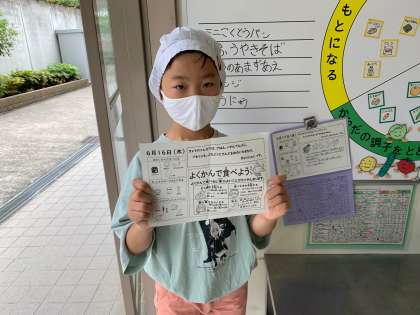 給食委員です。 給食室の毎日の献立を書いてくれています。
