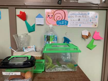 3・4年生はカタツムリ、アゲハチョウの幼虫等を飼っています。