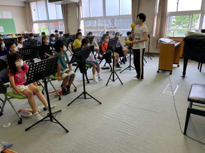 「音の重なりを感じ取ろう」 次回、マラカスなどの楽器を使います。