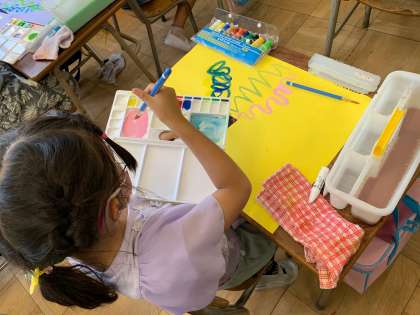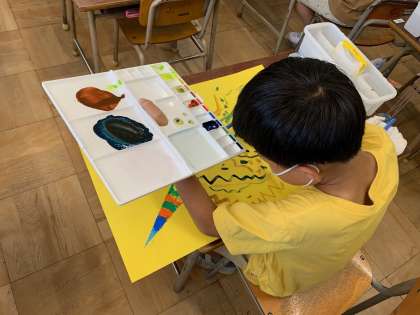 「とび出せクラッカー」2 色を混ぜるときは、大きい部屋で作ります。