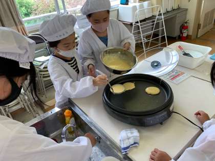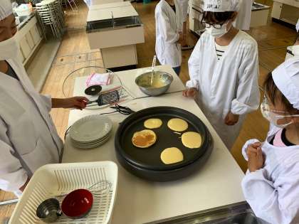 手芸クラブ1 今日は、調理実習をしました。 ホットケーキ作りです。