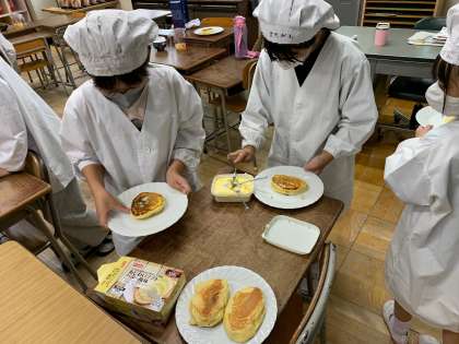 手芸クラブ2 バターとシロップをぬって食べました。