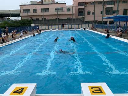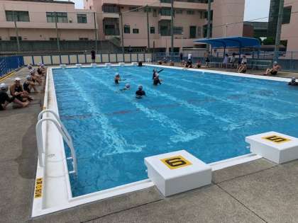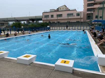 平泳ぎの練習です。手と足を動かすタイミングがポイントです。