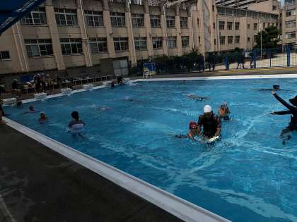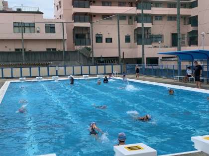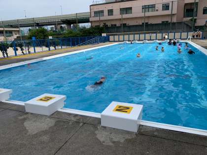 クロールの練習です。課題別に分かれ練習しています。