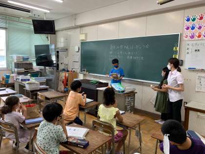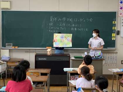 2年生 夏休みの自由けんきゅうを発ぴょうしていました。 力作ぞろいでした。