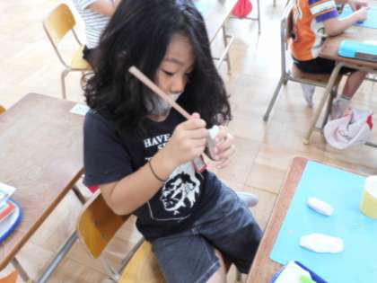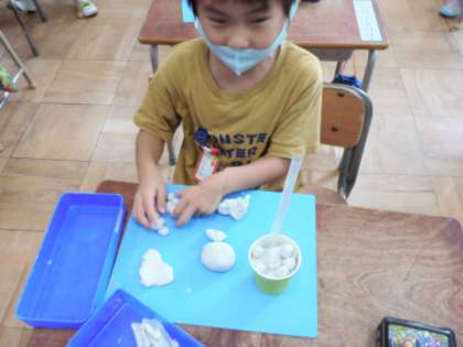 ねんどをつかい、いろいろなたべものをひょうげんしました。