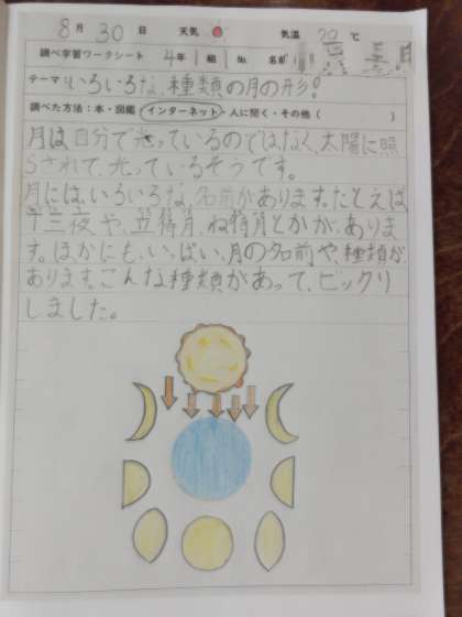 「月について調べよう」 各自がまとめたものを先生に送信し、発表しました。