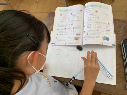 わり算のひっ算で、商の見当をつけています。
