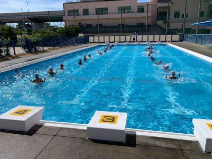 いい天気で、子どもたちは、気持ちよく泳ぐことができました。泳力のきろくもとりました。自分の目標達成に向けてがんばりました。