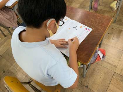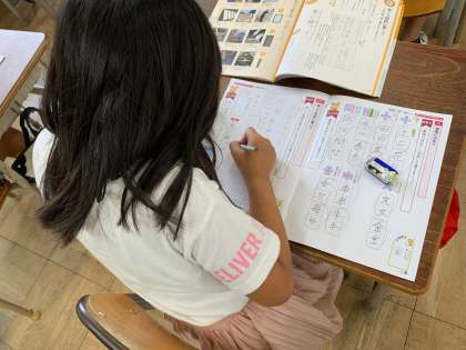 それぞれの漢字を書く時のポイントを押さえます。そして、えんぴつの持ち方、姿勢など、ていねいに指導します。