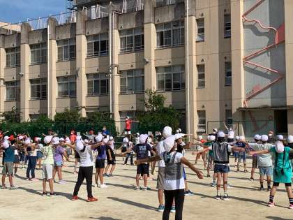 運動会に向けて、ラジオ体操の練習です。