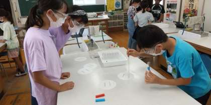 9月26日(月) 学習のようす 6年 理科1 公開日 2022/09/26 更新日 2022/09/26 お知らせ 水よう液の仲間分け1 炭酸水・重そう・アンモニア水・塩酸・食塩水を、リトマス紙を使い、仲間分けします。 いいね(0)