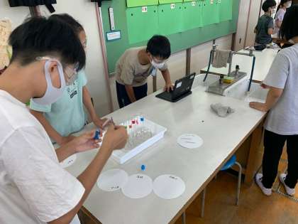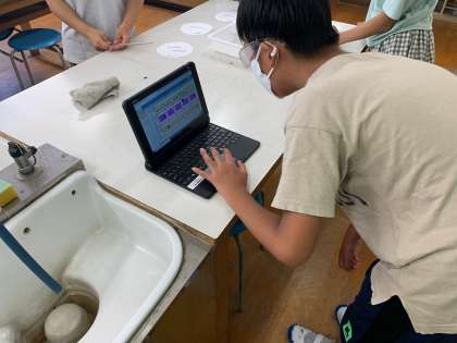 水よう液の仲間分け2 実験結果は、タブレットにまとめ、共有します。