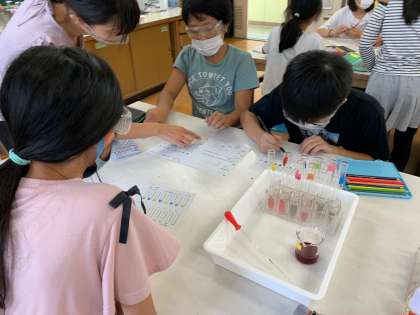 9月30日(金) 学習のようす 6年 理科3 公開日 2022/10/03 更新日 2022/10/03 お知らせ 「いろいろな水溶液をBTB溶液とぶどうジュースを使って仲間分けしよう」3 いろいろな水溶液をBTB溶液で仲間わけしました。また身近なぶどうジュースでも水溶液の性質を調べることができることを確認しました。 いいね(0)