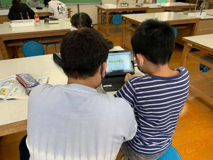 タブレットでまとめたものは、全体で交流します。