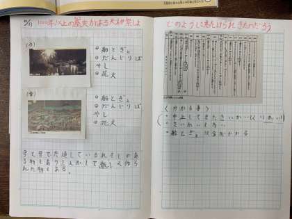 だんじりばやし、船とぎょ、花火などが昔から今まで続いていることを知りました。また、資料から、何度か中止・再開を繰り返していることに気づきました。