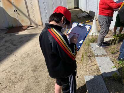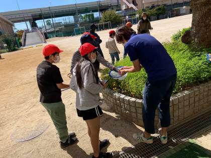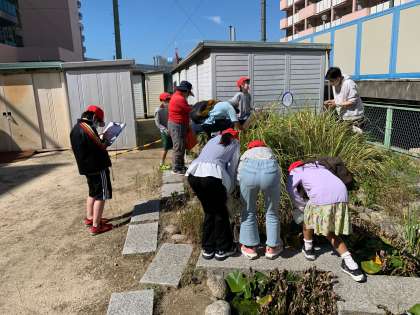 各グループに記録係がいて、見つけた生き物を記録していきます。