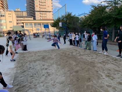 子どもたちの走り幅跳び大会1