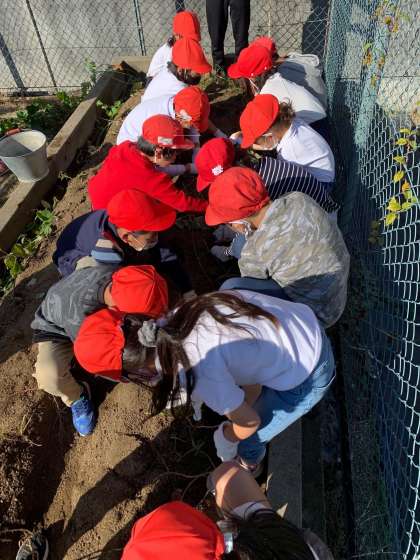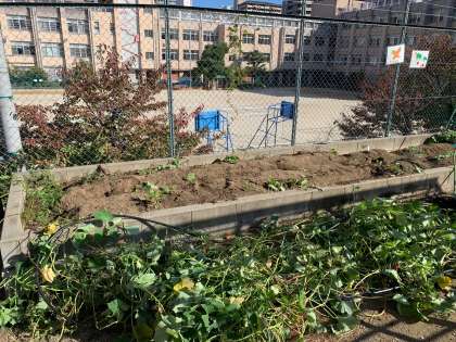 いもほり1 2年生は、学校で育てていたサツマイモのいもほりです。