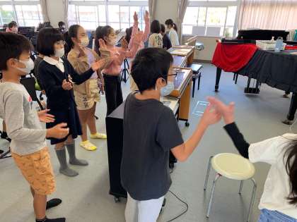 11月7日(月) 学習のようす 3年 音楽1 公開日 2022/11/07 更新日 2022/11/07 お知らせ 合同音楽会の練習です。 ボディーパーカッションです。リズムが合ってきました。 いいね(0)