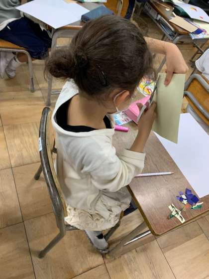 紙はんが1 ハサミで切り取り、はっていきます