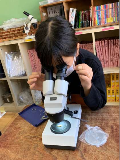 見つけたチリメンモンスターを顕微鏡で観察です。