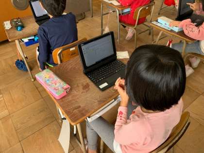 1年生に新しいタブレット端末が届きました。