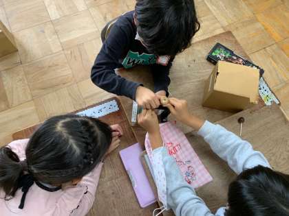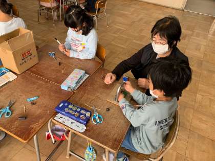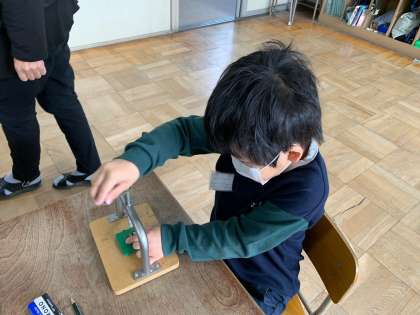 11月17日(木) 学習のようす 1年 せいかつ3 公開日 2022/11/17 更新日 2022/11/17 お知らせ あきのおもちゃをつくろう3 せんようのあなあけきをつかい、まっすぐにあなをあけていきます。そして、くしをきってさしたらかんせいです。 いいね(0)