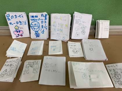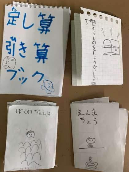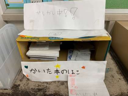 2年生が、自分たちで本を作り、みんなに読んでもらっています。楽しい本ばかりです。