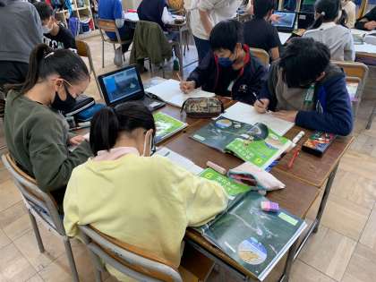 教室で、撮影した動画を見て、気づいたことをまとめていきます。