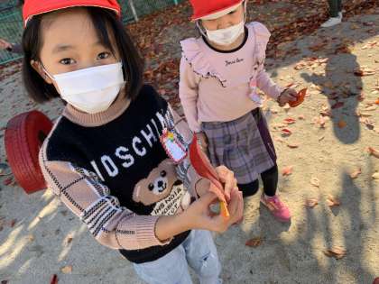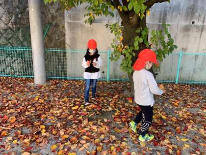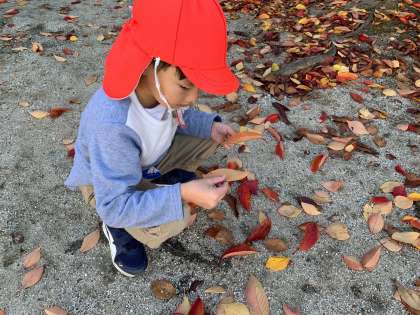 みのむしをつくろう2 いろいろなかたちのおちばをみつけました。