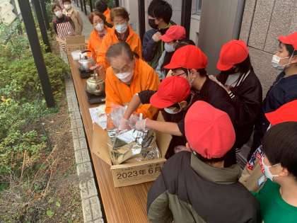 6年生が、炊き出しの見学をしました。