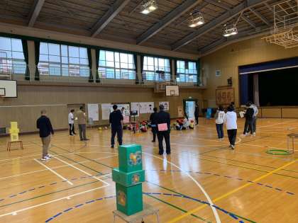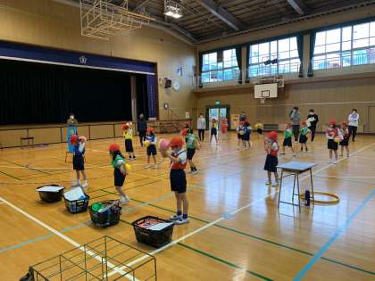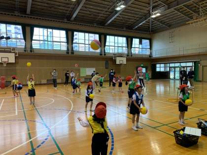 5時間目に、教員研修の授業研究会がありました。まずは、今日のめあての確認と、ボールハンドリングです。
